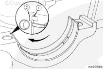 注: 某些康明斯ISL9.5 CM2150发动机的上下主轴瓦不可互换。如果需要,在主轴承的背面标记正确的定位方向。