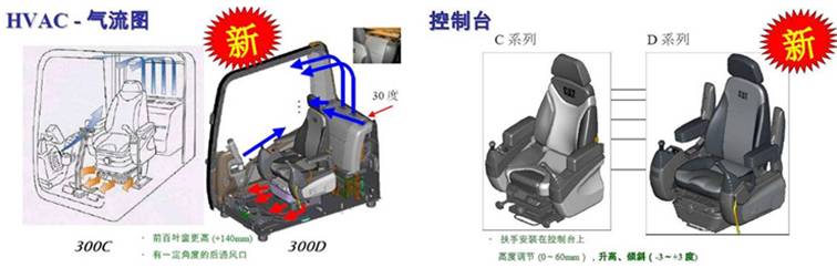Ø 新型悬浮式座椅可进行多向调节,以适应操作员的身材和体重,包括前后、高度和重量。还可配备可调节的宽扶手和可卷收安全带。