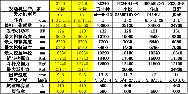 卡特彼勒324D/324DL维修技术参数