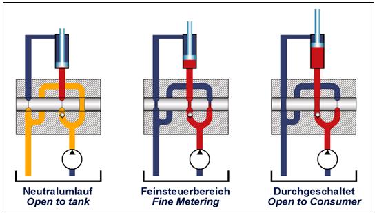 以上所述的工作原理同样适用于几个阀杆,根据液压泵提供有效流量,所有操作能从停止到最大速度相应并行地受到控制。